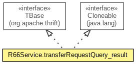 public static class R66Service.transferRequestQuery_result extends Object implements org.apache.thrift.TBase<R66Service.transferRequestQuery_result,R66Service.transferRequestQuery_result._Fields>, Cloneable
